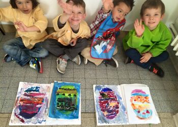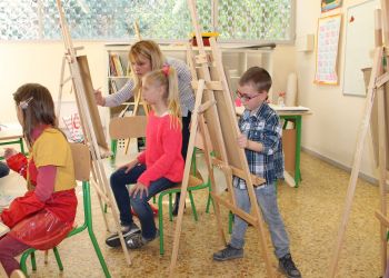 - работать различными художественными материалами (дети знакомятся с их свойствами и изобразительными возможностями, в процессе учёбы приобретают навыки работы с ними). Малыши работают гуашью, дети постарше гуашью, акриловыми красками, акварелью;