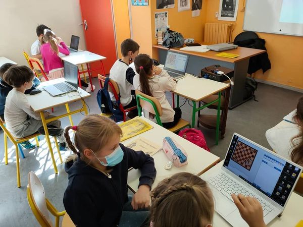 На уроках по шахматам у Боднар-Рибро Ксении Петровны в последнее время настоящий компьютерный класс! Ребята решают на компьютерах шахматные задачки, закрепляют пройденный материал и готовятся к шахматном турниру в конце учебного года.